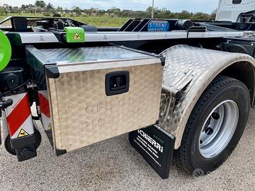 Iveco EUROCARGO 140 E 22 euro 5 passo 3690 con massa rimorchiabile, predisposto con blocco differenziale. Tagliandato con freni nuovi anteriore e posteriore. super accessoriato, Attrezzatura scarrabile 12 TON nuova di fabbrica per casse fino a 5200 mm . Attrezzatura costruita in acciaio alto resistenziale STRENX 700, rullo stabilizzatore verticale, rulli in acciaio registrabili avanzamento cassa, pompa idraulica a pistoni e presa di forza BEZARES, distributore oleodinamico comando esterno VALVOIL. Comandi esterni con distributore oleodinamico e comandi interni cabina con telecomando ergonomico e cavo estensibile. Paraincastro posteriore modello rinforzato con mensole per fanali ad incasso e griglie di protezione incernierate. Allestito con parafanghi e cassette porta attrezzi inox fiorettato, paracicli in acciaio fiorettato con calzatoie yellow, applicazione cristallo posteriore cabina per maggiore visibilà durante l'esecuzione delle manovre incarramento, scarramento e ribaltamento. Il veicolo risulta perfettamente funzionale e performante in ogni sua parte., lavorazione eseguite: freni completi, imboccolatura balestre anteriori e barre stabilizzatrici ant/post , revisione impianto pneumatico ed elettrico, COMPRESO REVISIONE DELL'ATTREZZATURA, COLLAUDO DEL VEICOLO E RILASCIO RAPPORTO TECNICO TACHIGRAFO DIGITALE. SPESE DI IMMATRICOLAZIONE INCLUSE Info: Mostra Pichierri Michele Mostra numero OFFICINE PICHIERRI SRL SAVA (TA) Officina autorizzata IVECO - ASTRA