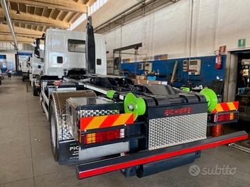 IVECO 190 EL 28 euro 6 , passo 3690, 9 marce, veicolo tagliandato con freni nuovi anteriore e posteriore, super accessoriato, allestimento attrezzatura SCARRABILE 16 TON nuova di fabbrica .Attrezzatura costruita in acciaio alto resistenziale STRENX 700, rullo stabilizzatore verticale, rulli in acciaio registrabili avanzamento cassa, pompa idraulica a pistoni e presa di forza BEZARES, distributore oleodinamico comando esterno VALVOIL.Comandi esterni con distributore oleodinamico e comandi interni cabina con telecomando ergonomico e cavo estensibile. Paraincastro posteriore OMOLOGATO modello rinforzato con mensole per fanali ad incasso e griglie di protezione incernierate.Allestito con parafanghi e cassette porta attrezzi inox fiorettato, paracicli in acciaio fiorettato con calzatoie yellow, applicazione cristallo posteriore cabina per maggiore visibilà durante l'esecuzione delle manovre incarramento, scarramento e ribaltamento.Il veicolo risulta perfettamente funzionale e performante in ogni sua parte., lavorazione eseguite: freni completi, imboccolatura balestre anteriori e barre stabilizzatrici ant/post , revisione impianto pneumatico ed elettrico, COMPRESO REVISIONE DELL'ATTREZZATURA, COLLAUDO DEL VEICOLO E RILASCIO RAPPORTO TECNICO TACHIGRAFO. visibile presso OFFICINE PICHIERRI SAVA (TA) Info:< svg role="img" aria-hidden="true" width="24px" height="24px" viewBox="0 0 24 24" xmlns="http://www.w3.org/2000/svg" xmlns:xlink="http://www.w3.org/1999/xlink" class="">< /svg>Mostra numero < svg role="img" aria-hidden="true" width="24px" height="24px" viewBox="0 0 24 24" xmlns="http://www.w3.org/2000/svg" xmlns:xlink="http://www.w3.org/1999/xlink" class="">Mostra numero