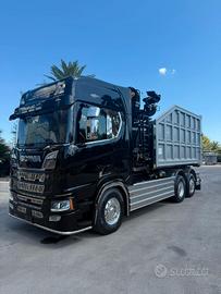 Scania R540 6x2 del 2020, Euro 6, km 596000 circa, terzo asse sterzante e sollevabile, cambio automatico, interni in pelle, pneumatici e cerchi in lega nuovi, Attrezzatura scarrabile di marca BOB SPA mod. Italev TA 26 L/MS NUOVO DI FABBRICA, cassa scarrabile BOB SPA ITALEV con Gru con polipo, stabilizzatori anteriori caricatore nuova di fabbrica, dispositivo 4.0, veicolo in perfette condizioni d'uso