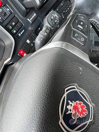 Telaio Scania R540 6x2 del 2020, Euro 6, km 596000 circa, terzo asse sterzante e sollevabile, cambio automatico, interni in pelle, pneumatici e cerchi in lega nuovi, Attrezzatura scarrabile di marca BOB SPA mod. Italev TA 26 L/MS NUOVO DI FABBRICA, veicolo in perfette condizioni d'uso