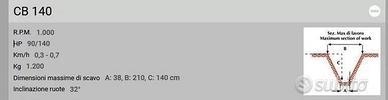 STATO buonoMODELLO cb140PROFONDITA' (cm) vedi fotoPER HP 90-140CARATTERISTICHE:- Trasmissione con scatola ingranaggi a bagno d'olio-attacco a 3 punti con pistone-profondità regolabile tramite sollevamento idraulico del trattore-telaio fisso, lavora solo nella posizione centrale doppia ruotawww.usatoagricolo.com