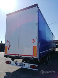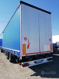 Rimorchio due assi biga, cassone centinato alla francese 7800 x 2550, altezza interna 2980, due porte posteriori, laterali scorrevoli, con tetto copriscopri, senza alzabbassa