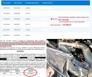 Come desumibile dalladocumentazione probatoria allegata, a c.a. 446.000 km, l'amministrazione haeseguito una manutenzione straordinaria dell'automezzo con un costo pari a €6.549,00, effettuando i seguenti interventi: Rettifica del motore, revisionepompa e iniettori, sostituzione kit frizione, distribuzione e pompa dell'acquae ganasce freno a mano.