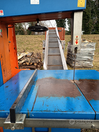 Nastro trasportatore in acciaio inox regolabile in inclinazione e velocità trasporto legna.