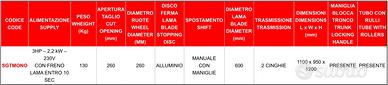 Dall'esperienza di oltre 50 anni nel mondo degli spaccalegna e dei biocippatori è nato il segatronchi più sicuro ed innovativo del mercato. È un segatronchi semplice ma con tutti i requisiti necessari per svolgere in maniera adeguata e professionale il lavoro del taglio del legno. È un segatronchi con telaio in lamiera d'acciaio, piegato e completamente saldato a robot. Nella parte frontale, per rendere massima la sicurezza viene installato una protezione avvitata e chiusa che permette di non far fuoriuscire schegge di legno. La visione dell'azione di taglio è verificabile attraverso gli intagli laterali. È disponibile nella versione elettrica con motori personalizzati Ceccato, dotati di freno che ferma la lama in 10 secondi, costruiti con speciali avvolgimenti di rame che permettono una maggiore resistenza allo sforzo. Questi motori sono frutto dello studio approfondito derivante dai molti prodotti della gamma Ceccato Olindo. Motore monofase (3HP 2,2kW 220V) o trifase (4HP 3kW 400V). È disponibile anche nella versione a scoppio con motore Hoda GP160 e nella versione a trattore con PTO per trattore. Ha un peso di circa 130 kg. Il segatronchi è dotato di una ampia serie di elementi che rendono comodo e professionale il taglio del tronco: