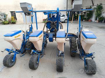 Vendesi, per cessata attività, seminatrice "Gallignani Precisa" 4 file a falcioni, con microgranulare e dischi semina per mais, soia e girasole. Distanza tra le file regolabile da 30 cm a 75 cm. Completa di cardano e manuale.