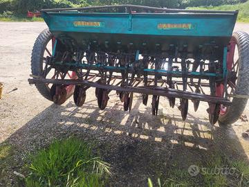 Seminatrice per grano orzo erba medica altro con 13 fila a dischi con doppia serbatoio per semi e concime . Tutto funzionante
