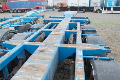 semirimorchi portacontainer allungabili dtec usati con 3 assali a disco saf, 1° e 3° assale sollevabili, ebs, sospensioni pnuematiche , allungo posteriore e centrale per carico di container da : 1 x 20 a filo, 2 x 20, 1 x30, 1 x40, 1x 45, casse mobili da 6015m a 13.60m, tank container,hi cube, anno 2010, ADR completi, 2 unità disponibili uguali salvo il venduto, CONCESSIONARIA INTERDRIVE SRL-PARMA