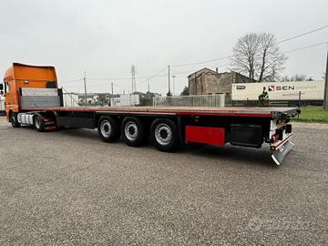 Semirimorchio Schmitz a pianale anno 2018, 3 assi, lunghezza 13,60 m, misura gomme 385/65 R22,5, revisionato