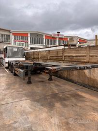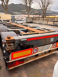 Semirimorchio per trasporto container . Allungabile per trasporto di container 40 ' e 20 ' . Revisione superata Maggio 24. Freni a tamburo, gommato 90%