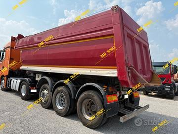 Semirimorchio Andreoli 36PM 70 anno 07/2002 ribaltabile posteriore 28mc con copri/scopri elettrico 3 assi balestrato PTT 36.800kg - portata 29.400kg lunghezza totale del semirimorchio 8.02m 1. asse sollevabile gomme 50% (315/80R22.5) assali ROR larghezza 2.55m ABS rev. scaduta