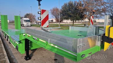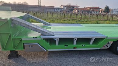 SEMIRIMORCHIO 4 ASSI NUOVO , sospensioni pneumatiche , assi sterzanti , primo asse sollevabile , assali ROR , verricello , rampe doppie idrauliche , radio comando , altezza piano di carico 76 cm , fosse laterali con coperchi in alluminio, fossa centrale in coda , lunghezza piano di carico 10 metri .