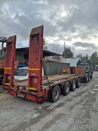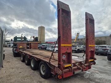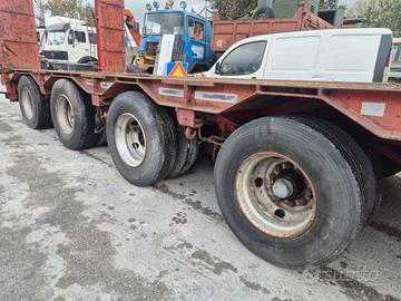 Semirimorchio Capperi carrellone allungabile anno 1985 trasporto eccezionale portata 59.300 kg lunghezza totale 11.20 mt, dal collo 7.20 mt, solo collo 3.65 mt altezza 85 cm da terra 4 assi, 2 asse sterzante sospensioni idrauliche Agganciabile a trattore 3 assi o gemellato