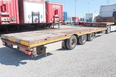 semirimorchio carrellone moeslin collo d'oca rampe usato, 3 assi con 3° sterzante, sospensioni pneumatiche, ebs, predisposizione per alloggio rampe posteriori amovibili, testata anteriore da 120cm, ganci collari rud laterali da 5 ton, twist loak x alloggio container da 20+20, 40 e 45 pedi, 3 traverse passanti rulasi sedi piantane, 2 cassette in pvc porta attrezzi, altezza da terra 84cm, anno 2019, CONCESSIONARIO INTERDRIVE SRL-PARMA