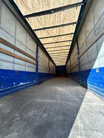 Semirimorchio centinato Krone anno 2011, 3 assi, massa complessiva kg 39000, portata kg 31900, misure 1360/250/263, con sponde laterali da 75 cm, copri scopri e tetto apribile, gommato, revisionato.