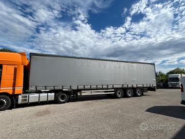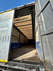 Semirimorchio centinato Krone anno 2011, 3 assi, massa complessiva kg 39000, portata kg 31900, misure 1360/250/263, con sponde laterali da 75 cm, copri scopri e tetto apribile, gommato, revisionato.