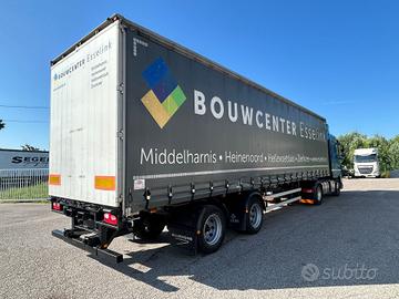 Semirimorchio centinato Samro anno 2008, 2 assi, massa complessiva kg 32000, portata kg 24580, misure 1158/255/248, primo asse sollevabile e secondo sterzante, con porte posteriori, gommato, revisionato.