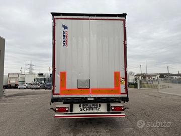 Semirimorchio centinato Schmitz primo asse sollevabile anno 2015, 3 assi, misure 1362/248/274, con porte posteriori, gommato, revisionato.
