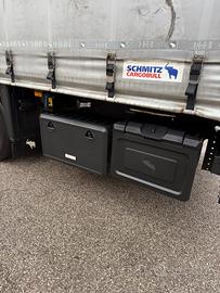 Semirimorchio centinato Schmitz anno 2018, 3 assi, primo asse sollevabile, misure 1363/247/274, con porte posteriori, misura gomme 385/65 R22,5, revisionato.