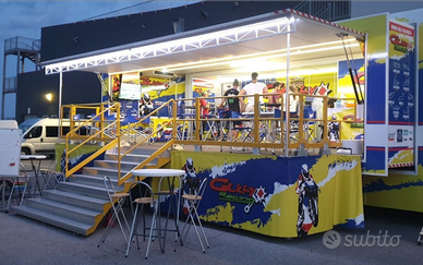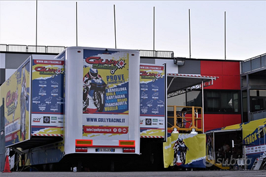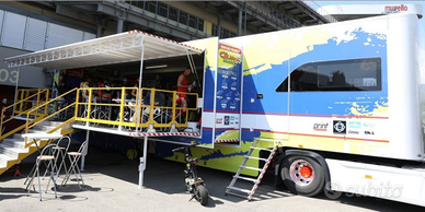 Buongiorno a tutti, vendo uno dei miei semirimorchi,(l'annuncio si riferisce al semirimorchio, il trattore viene venduto a parte) per il semplice motivo che non lo usiamo quasi più, l'ho fatto costruire cinque anni fa è omologato autoveicolo speciale, ha due slide, uno a destra uno a sinistra di 9 metri per 1.20 di larghezza, che si aprono oltre un pianerottolo di 8,20 x 1.85 metri supplementare.Inoltre ha una zona living dove ci sono sei posti letto, armadi, doccia, lavabo, riscaldamento e aria condizionata, il semirimorchio può essere usato come ufficio, come hospitality o come mezzo per promuovere i propri prodotti nelle fiere o nelle manifestazioni, oppure può essere usato come negozio, nella parte posteriore (dove si apre) vi è sia il riscaldamento che il condizionatore.