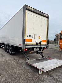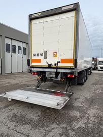 Semirimorchio furgonato Fruehauf anno 2017, 3 assi, primo asse sollevabile, massa complessiva kg 39000, portata kg 31000, misure 1347/249/262, con sponda posteriore retrattile kg 2000 e serranda posteriore, gommato, revisionato.