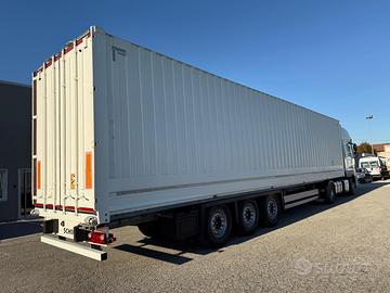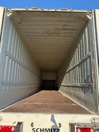 Semirimorchio container incorporato, furgonato Schmitz anno 2021, 3 assi, massa complessiva kg 39000, portata kg 30056, misure 1357/248/281, 1/3 assi sollevabili, con porte posteriori, gommato 90%, revisionato.