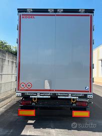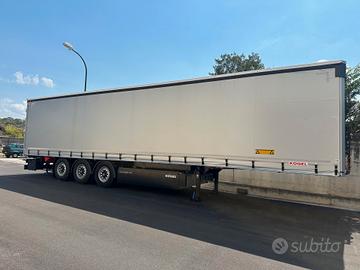 Semirimorchio Kogel, nuovo di fabbrica, completo dei seguenti accessori: - Centina alla francese - Alza / Abbassa - Copri / Scopri; - Altezza utile interna mt. 2,71 / 2,76 mt.; - Assali BPW - 1° Sollevabile / 3° Sterzante; N.6 Pneumatici Continental385/65 R 22.5; - Luci posteriori a LED; - Adr - Porta estintore estintore da 6 Kg; - Porta documenti - Cavo tir; - N.2 cassette attrezzi in pvc; - Telo colore Argento.
