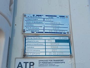 Anno 2011; Frigorifero FNA; Portata kg 26500; Frigo CARRIER VECTOR 1550; Ore: 11760 ATP regolare fino a settembre 2026; Sponda posteriore idraulica ANTEO 30 QLI.