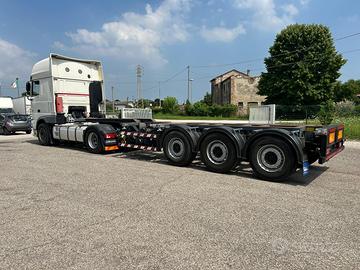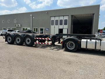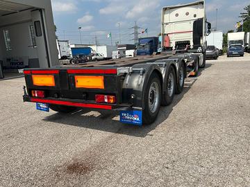 Semirimorchio porta container Broshuis - Lintrailers anno 2010, parte anteriore e posteriore allungabile, porta misure 1-20/2-20/1-30/1-40/1-45, primo asse sollevabile, gommato, revisionato