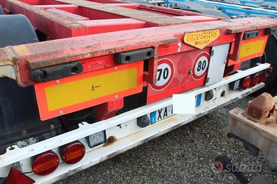 Semirimorchio portacontainer allungabile broshuis usato, 3 assi a disco con 1° e 3° sollevabile, sosp. pneumatiche, ebs, trasporta container da 1x20 a filo, 2x20, 1x30,1x40,1x45, casse mobili uic da 6.15m a 13.60m, hi cube, adr completi, anno 2010, telaio sfilabile anteriormente e posteriormente, ben gommato, CONCESSIONARIO INTERDRIVE SRL-PARMA