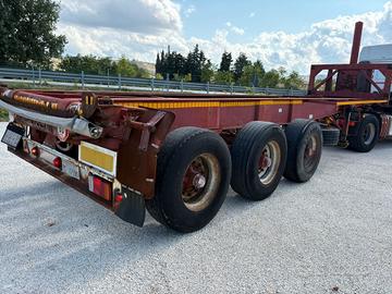 Semirimorchio CARDI allestimento ADAMOLI. Porta container 30pRibaltabile posterioreLunghezza 10.10 mtPortata 30700 kgPneumatici 385/65Larghezza 2,50 mt. BalestratoPrimo asse virtualeRealizzazione impianti scarrabili nuovi , ribaltabili nuovi , allestimento GRU nuove (qualsiasi marca) , cassoni fissi . Trasferimento allestimenti usati . Opera di carrozzeria industriale in genere.Trasformazione in macchina operatrice (targa gialla).Valutiamo permute con autocarri e mezzi movimento terra volvo daf man Mercedes.