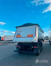 Semirimorchio ribaltabile nuovo.Kogelterzo asse sterzanteprimo asse sollevabilevasca da m3 27 in Hardox 450 fondo da mm 5 e pareti da mm 4copriscopri elettrico Cramaro, freno finitrice ,paraurti girevole ,assali Saf rinforzati da fuoristrada, verniciatura totale in cataforesisponda posteriore con guarnizione predisposta per tenuta stagna , vibratore, smart board , sospensioni pneumatiche a gestione elettronica.