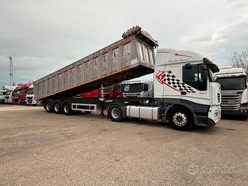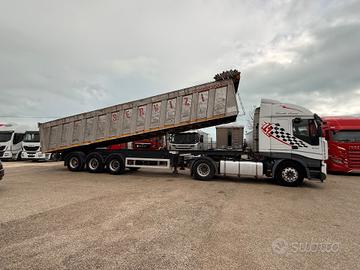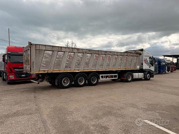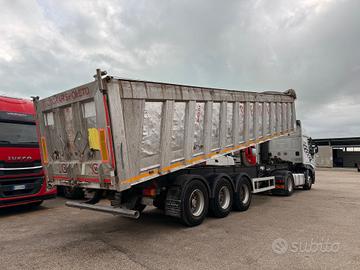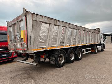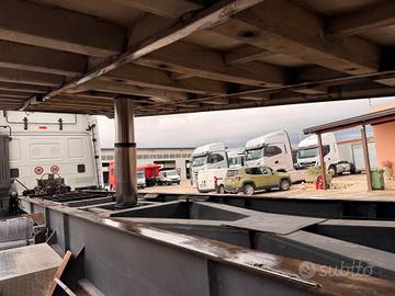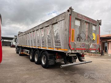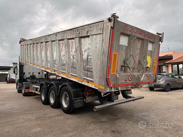 Semirimorchio Tecnokar, anno 2000, allestito con ribaltabile posteriore, sponde laterali fisse, lunghezza 12,00 mt, larghezza 2,55 mt, portata 27250 kg, pneumatici 385/65r22,5 , 1' asse sollevabile, freni a tamburo, sospensioni pneumatiche... Info N' Mostra numero N' Mostra numero