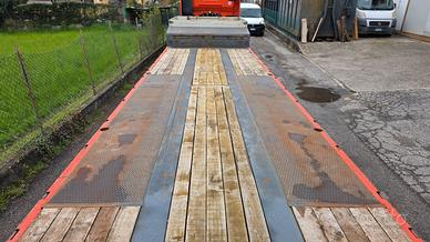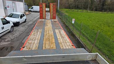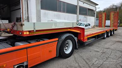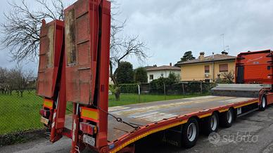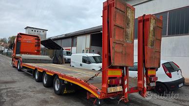 Vendo semirimorchio carrellone collo d'oca ribassato con rampe doppie idrauliche De Angelis 3 assi lunghezza totale metri 13,45. Anno 2006. Portata kg. 29.300. Sospensioni pneumatiche. Terzo asse sterzante. Lunghezza piano basso metri 9,65. Lunghezza piano alto / collo metri 3,25. Altezza piano basso cm 85. Altezza piano alto / collo cm 130. Rampe posteriori doppie elettro idrauliche. Rampe in alluminio per salita sul collo. Fori laterali per piantane / stanti. Spondine in alluminio su collo. Revisione regolare valida fino ad ottobre 2026. Prezzo netto i.e.. Per info