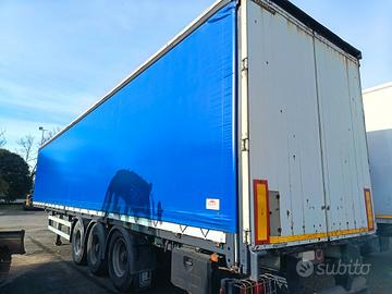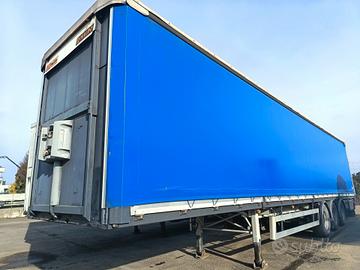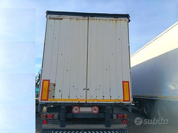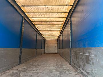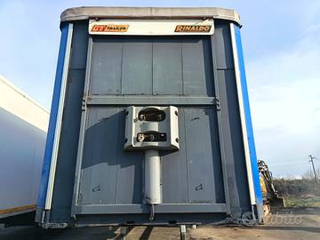 Semirimorchio Rinaldo 3 assi, anno 2002, PTT 36.800 kg, portata utile 29.440 kg, sospensioni pneumatiche, primo asse virtuale, teloni laterali scorrevoli, tetto copri/scopri, porte posteriori in lega, sponde in lega leggera H 800 mm.