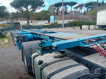 BROSHUIS telaio allungabile sia nella parte anteriore che posteriore porta container da 20a 45 piedi sospensioni pneumatiche, freni a tamburo, piedi a doppia velocita capacita di portata 440q 3 assi, 6 gomme