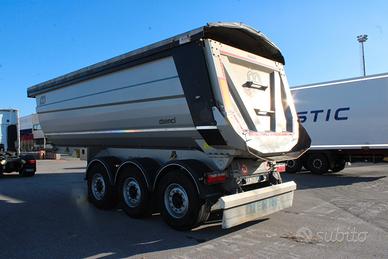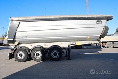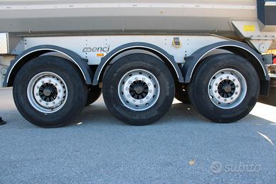 SEMIRIMORCHIO VASCA MENCI SA700R, anno 2021, copri/scopri con telecomando, portata utile 32.570 kg, vibratore elettrico, vasca 33 metri cubi, freni a disco, primo asse sollevabile fisso, terzo asse sterzante, gomme 385/65 R22.5, ruota di scorta. Scadenza revisione: 10/2026