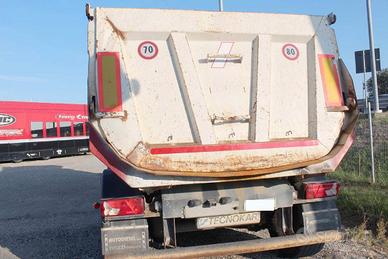 semirimorchio vasca ribaltabile 27m3 tecnokar usato, 3 assi singoli a disco con 1° sollevabile e sterzante, sospensioni pneumatiche, abs, vasca tonda un acciaio con spessori 5mm fondo e pareti 4mm, copri scopri cramaro elettrico con telo in pvc, portellone basculante con fermi pneumatici, finitrice posteriore, cilindro frontale con innesti idraulici a doppia mandata, anno 2008, revisionata sino al 31.03.2026-CONCESSIONARIO INTERDRIVE SRL