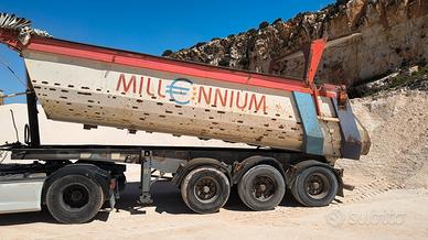 Semirimorchio vasca zorzi ribaltabile 6 gomme, sospensioni pneumatiche con freni a disco, rinforzato per carico pietrame, apertura sponda idraulica ad ala di gabbiano, ben gommato, da rivedere la verniciatura, telone copri scopri a chiusura manuale,da revisionare.