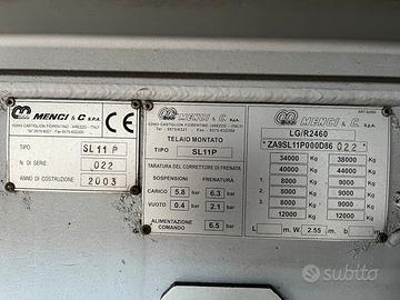Semmirimorchio Menci,anno 2004,cassone ribaltabile posteriore,lunghezza 12.260 m,larghezza 2.55 m,portata 28.950 kg,sospensioni aria,6 gomme,ottimo stato, prezzo trattabile