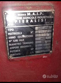 Seperatore Pieralisi 1500/2000 autopulente, acquistato nuovo, ha lavorato circa 100 quintali di olio in 2 campagne olearie, dopo e stato fermo al coperto per cessata attività. Info. 388 1813846
