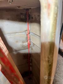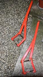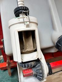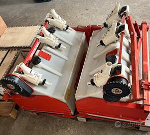 Due serbatoi spandiconcime Gaspardo seminuovi da 160 litri l'uno completi di griglie, 3 dosatori volumetrici ognuno a regolazione singola, trasmissione laterale con pignoni e catena, tubo quadro di trasmissione, fianchi in ferro, staffe e cavallotti di supporto.