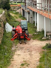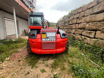 Sollevatore Telescopico Manitu anno di costruzione 2000, portata massima 3000 kg a 500, altezza di sollevamento 12,5 mt, unito di forche e pala.