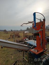 Attrezzatura professionale con attacco a 3 punti e PTO. Sega nastro diametro max 40. Spaccalegna da 15 T . Nastro trasportatore in acciaio inox. regolabile in inclinazione e velocità da 3 metri. Facile da spostare.
