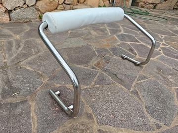 Vendo spalliera tubolare in acciaio inox completa di poggia schiena tubolare per gommoni Novamarine. Distanza tra i fori delle staffe di fissaggio laterali 14 cm. Distanza interna tra le staffe di fissaggio laterali 76 cm. Ingombro laterale massimo 86 cm. Altezza fuori tutto (compreso il cuscino) 46 cm.