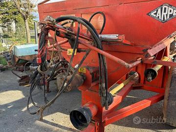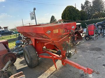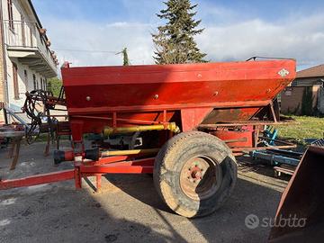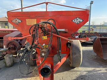 Vendesi spandiconcime carrellato marca CARPO, capacità circa 3000 kg, cassone con coclea idraulica per avanzamento prodotto, serracinesca idraulica, ventola a cardano. Carreggiata 210 cm, lunghezza totale 500 cm, vasca 320 cm x 170 cm di larghezza. Per informazioni