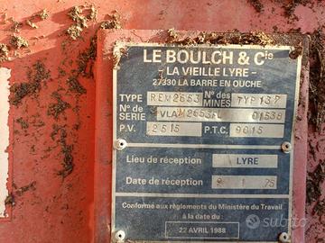 Spandiletame marca Le Boulch modello Rem 2653 a spargimento posteriore- di fabbricazione francese- due rulli posteriori- non stradale- in buone condizioni- cassone di 4 m x 1,40 m- altezza delle sponde 1 m.