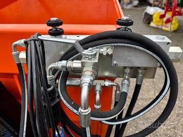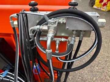 Gestione idraulica per mezzo di solo due tubi dell olio, ( andata e ritorno)e di un devio che manda l olio , una volta caricato di sale, a i due motori idraulici. Che a sua volta grazie a una valvola meccanica danno il moto al rullo convogliatore( per la quantità). È l l'altro alla ventolino di distribuzione per lo spaglio