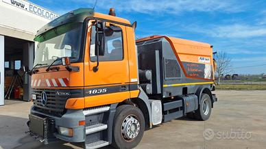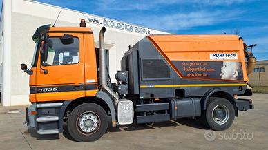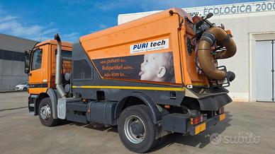 Mercedes Actros 18.35 del 2002, PTT 18T, km130.000, cambio semi automatico, allestito con spazzatrice aspirante Schmidt SK650 da circa 6,5 mc, gruppo di aspirazione lato dx, motore ausiliario WM turbo, posteriore per le foglie, pronta all'uso.
