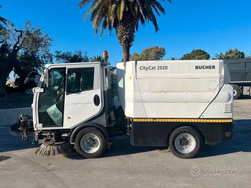Spazzatrice Bucher modello City cat 2020, del 2017, snodata con 5000 ore di lavoro circa, veicolo in perfettamente funzionante